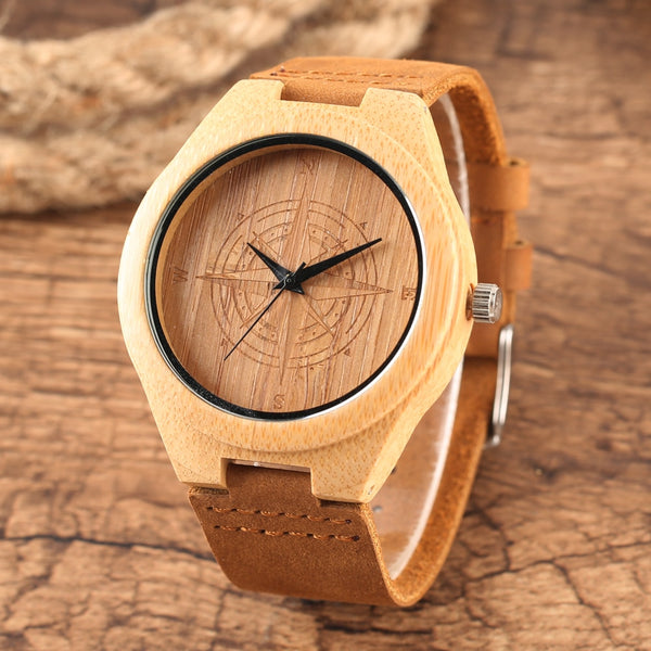 Bamboo Watch Mens Handmade Wooden Wristwatch Quartz Genuine Leather Wood Watch for Men Unique Fashion Wrist Clock Gifts reloj